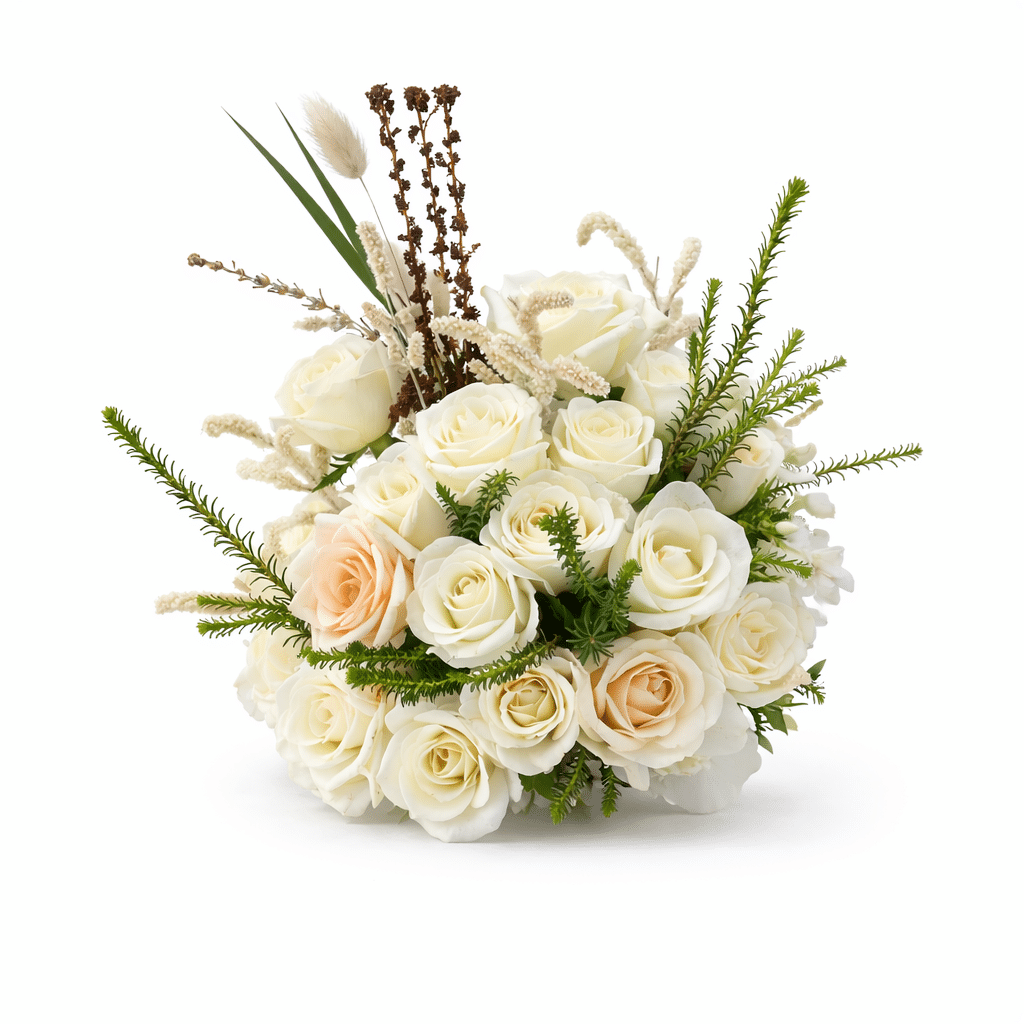 זהו זר שמשדר טוהר, רומנטיקה ועדינות מודרנית – שילוב בין קלאסי לכפרי־יוקרתי.