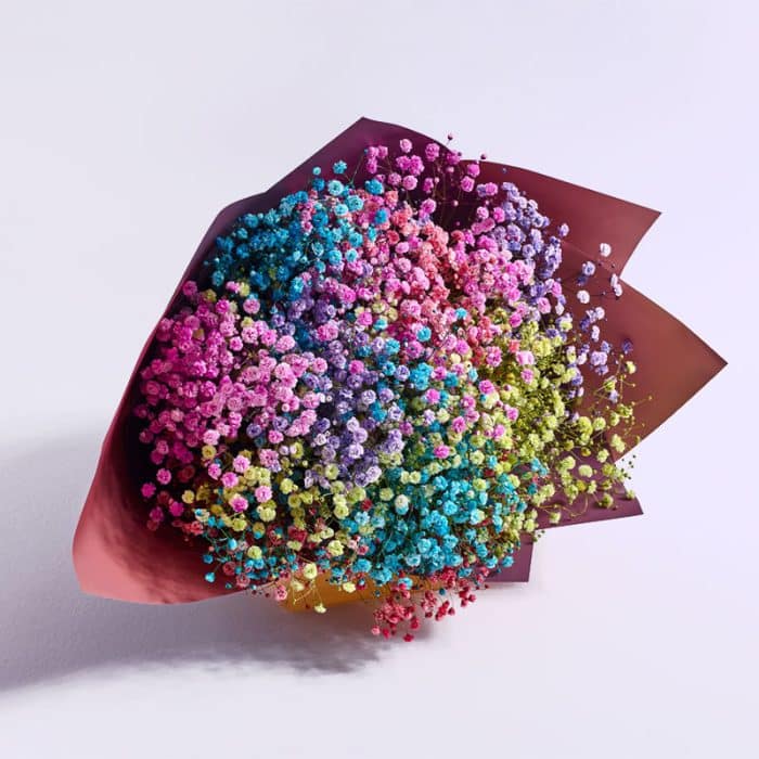 זר קומפקטי, אוורירי ועדין של גיבסניות צבעוניות.