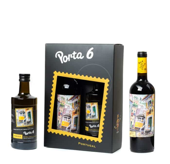 מארז אלגנטי ומלא סטייל מבית Porta 6, המשלב יין אדום עשיר יחד עם שמן זית כתית מעולה, שנבחרו בקפידה לחוויית טעמים ים־תיכונית מושלמת.