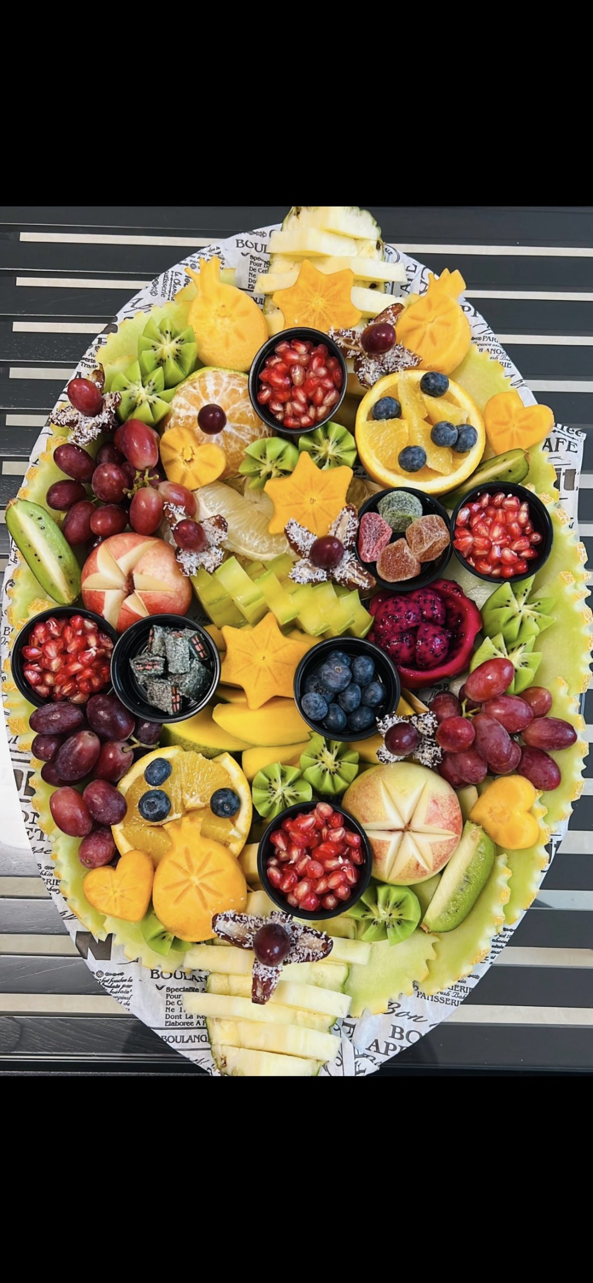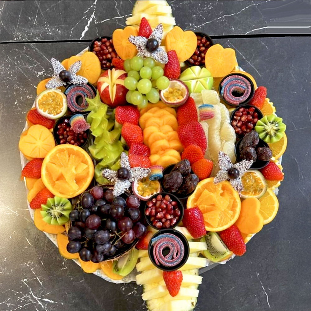 מגש פירות מגוון וצבעוני, אידיאלי לאירוח, מתנה חגיגית, ביקור אצל אהובים או הפתעה מושקעת ומשמחת.